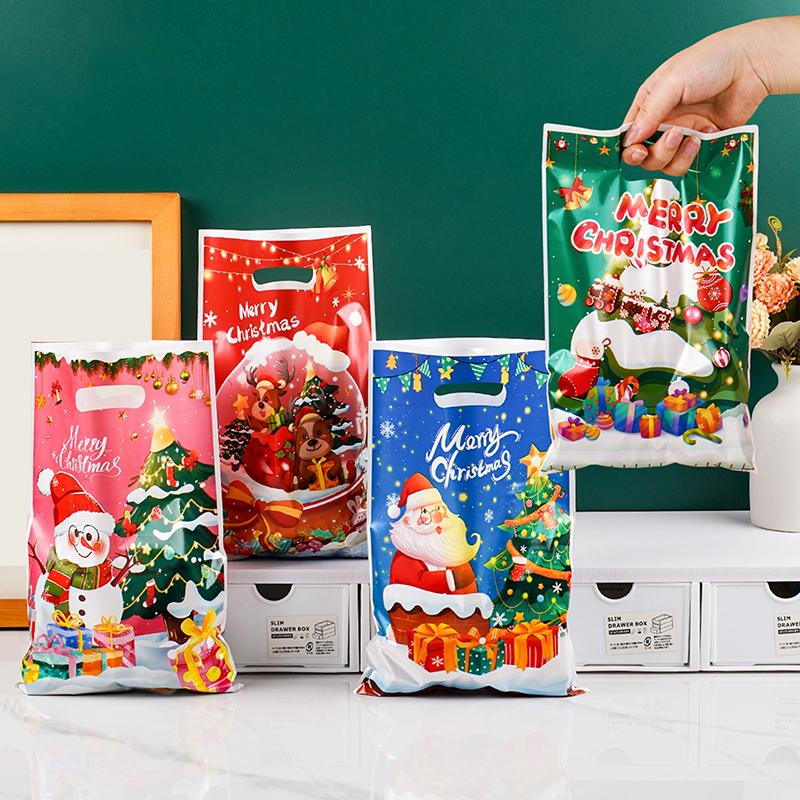 30 Stück Weihnachten Plastik Geschenktüten Frohe Weihnachten Goodie-Tüte mit Henkel Leckerli Süßigkeiten Keks Snacktüte für Weihnachtsfeier Zubehör