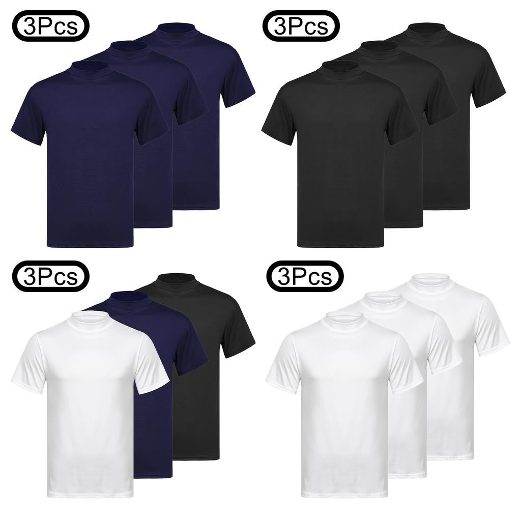 Herren 3-teiliges Mock-Neck Kurzarm-T-Shirt Lässiges einfarbiges Slim-Fit Oberteil Unterhemd Set