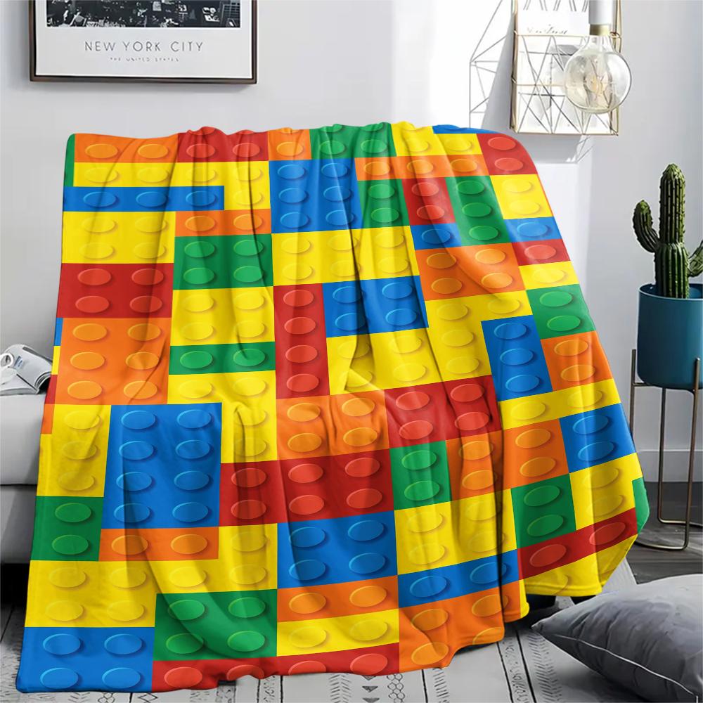 1 Stück Bauklötze Muster Flanell Decke, Hohe Qualität, Bequem für Alle Jahreszeiten, Heimdekoration, Wärme und Komfort, Perfekt für Weihnachtsgeschenke