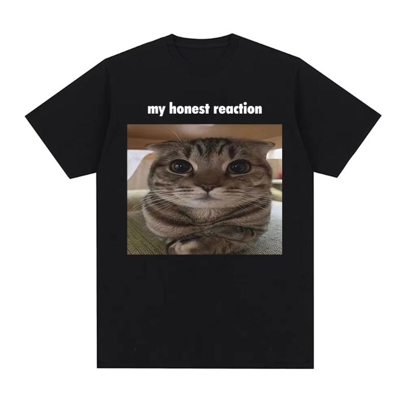 My Honest Reaction Funny Cat Meme TShirt Mens Women Clothing Fashion Harajuku Tshirts Casual Cotton Short Sleeve T Shirt Tops