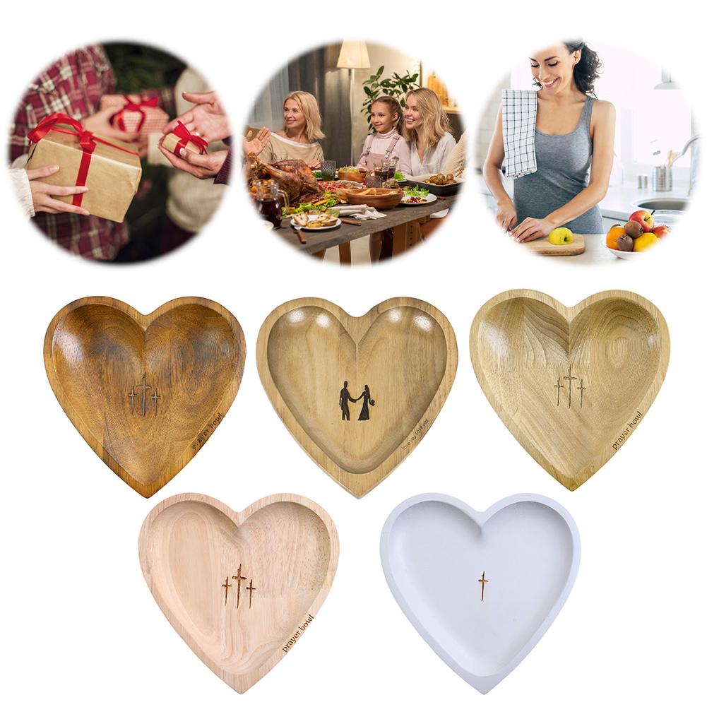 Heart Prayer Bowl Wooden Handmade Prayer Bowl 12 Prayer Cards Wood Dough Bowl Religious Christmas Christian Gifts for Women Men