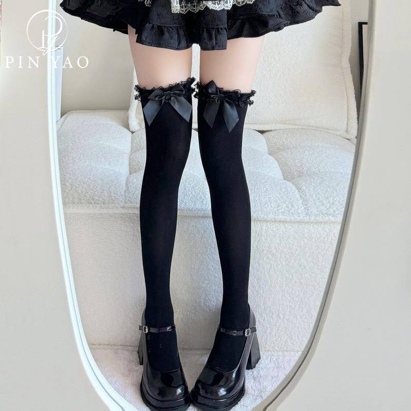 Spitze Spitze Schleife Overknee-Socken Schwarze Oberschenkel-Socken Lolita Damen Anti-Haken Lange Socken