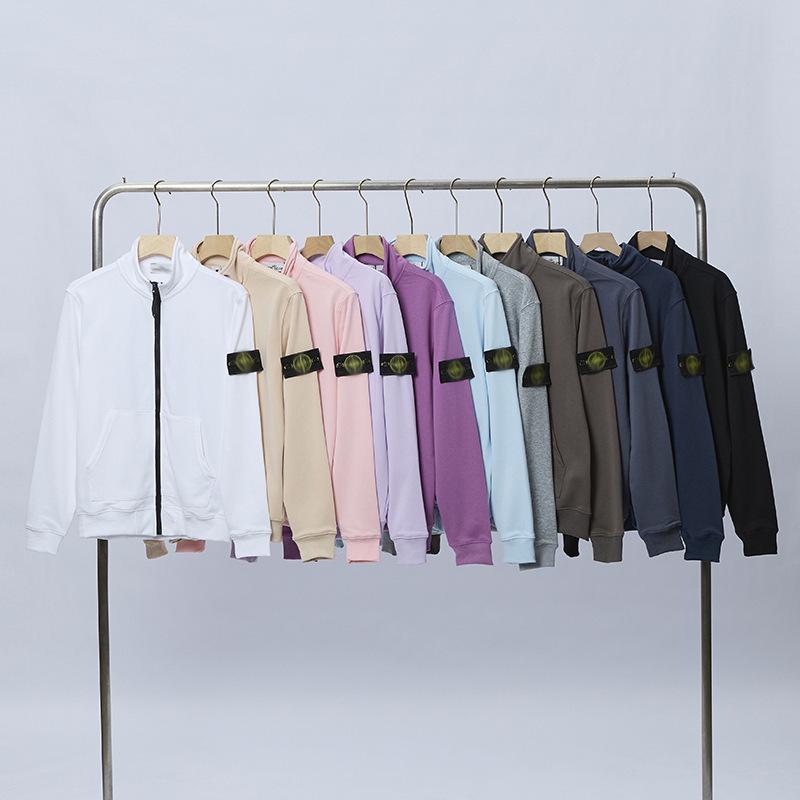 Cross Classic STEIN Stehkragen Reißverschluss Strickjacke Frottee Ärmel Abzeichen Lässige Herrenjacke