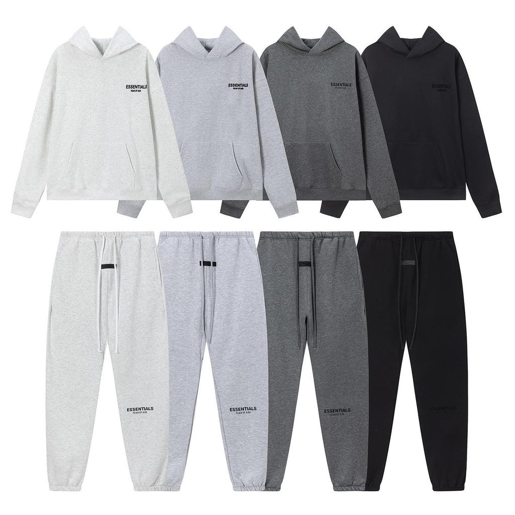 Trendiger schwarzer FOG Essentials Kapuzenpullover mit Buchstaben-Flockdruck