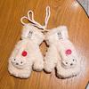 Charming Cartoon Rabbit Plush Gloves - Warm Velvet Lined Winter Mittens for Women and Students
