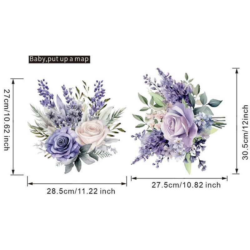 Elegant Purple Hyacinth Flowers Toilet and Wall Sticker Set Waterproof Self-Adhesive Removable Decal for Bathroom WC Home Decor