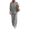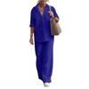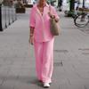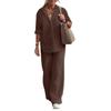Women's Linen Two Piece Set Casual Button Down Shirt Wide Leg Pants Outfit