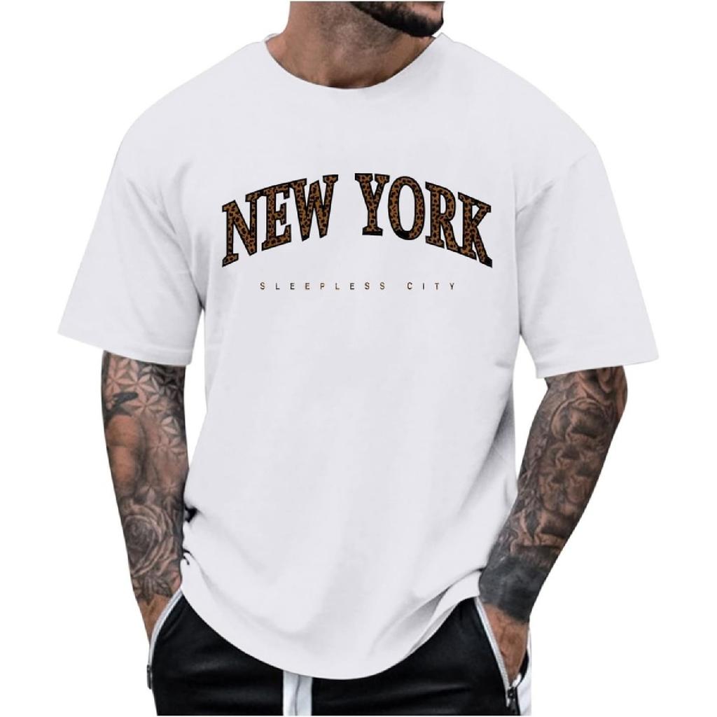 New York T-Shirts für Herren Mode Buchstabenprint Kurzarm Rundhals T-Shirt Tops Sommer Lässig Locker Komfort T-Shirt