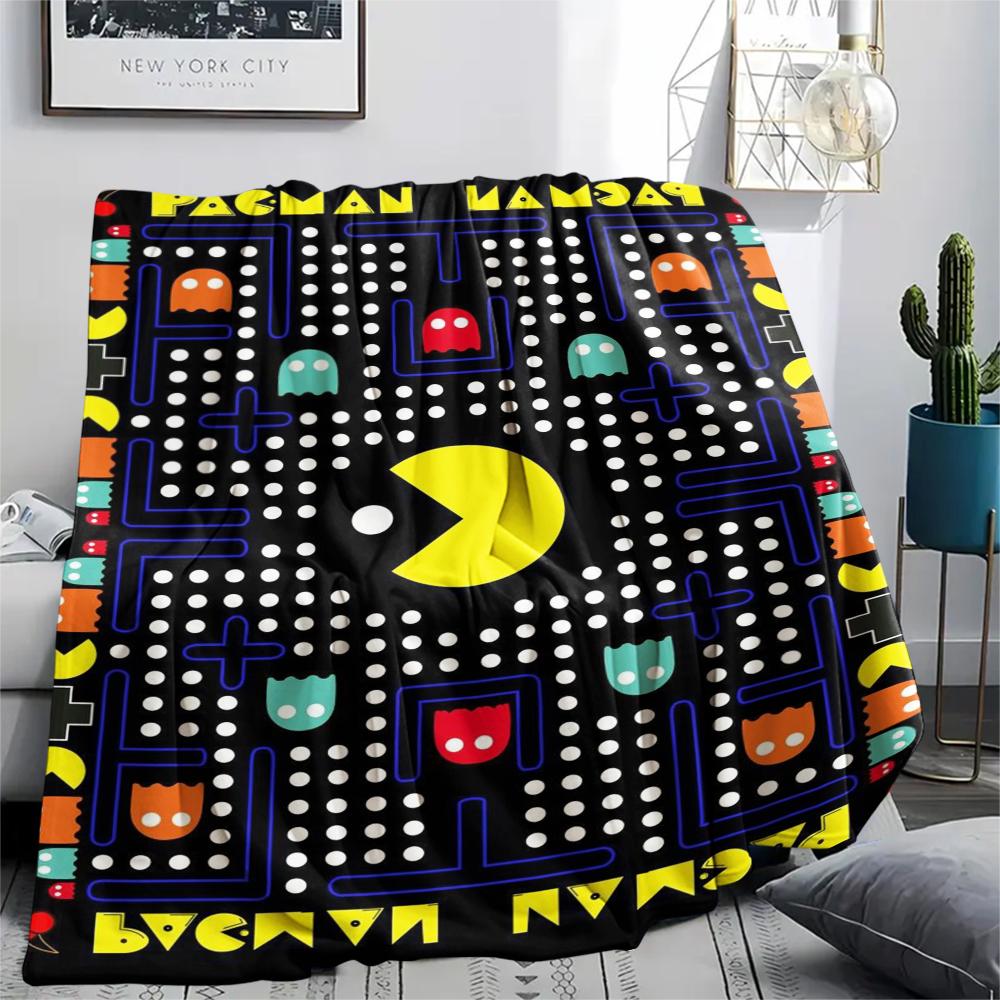 1 Stück Pacman-Print Flanelldecke, Hohe Qualität, Bequem für alle Jahreszeiten, Heimdekoration, Wärme und Komfort, Perfekt für Geschenke