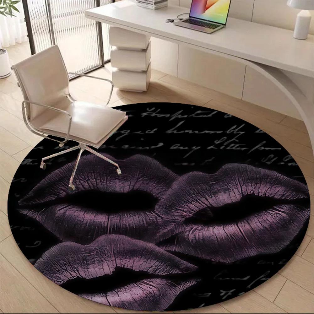 1pc Lips Kiss Office Round Area Rug, Mat Suitable ForOffice, Under Office Chairs Bedroom Living Room Home Decor, Room Deco