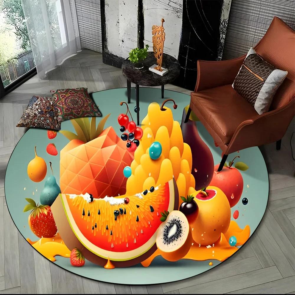 3D Niedlicher Tropenfrucht-Druck Runder Teppich Cartoon Früchte Teppich für Wohnzimmer Schlafzimmer Spielzimmer Badezimmer Dekor Rutschfeste Bodenmatte