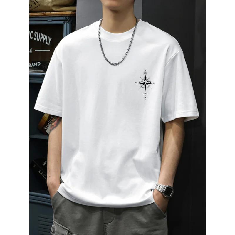 Mens TShirt White Compass Rose Printed Pattern Text High Quality Cotton Tops Tees