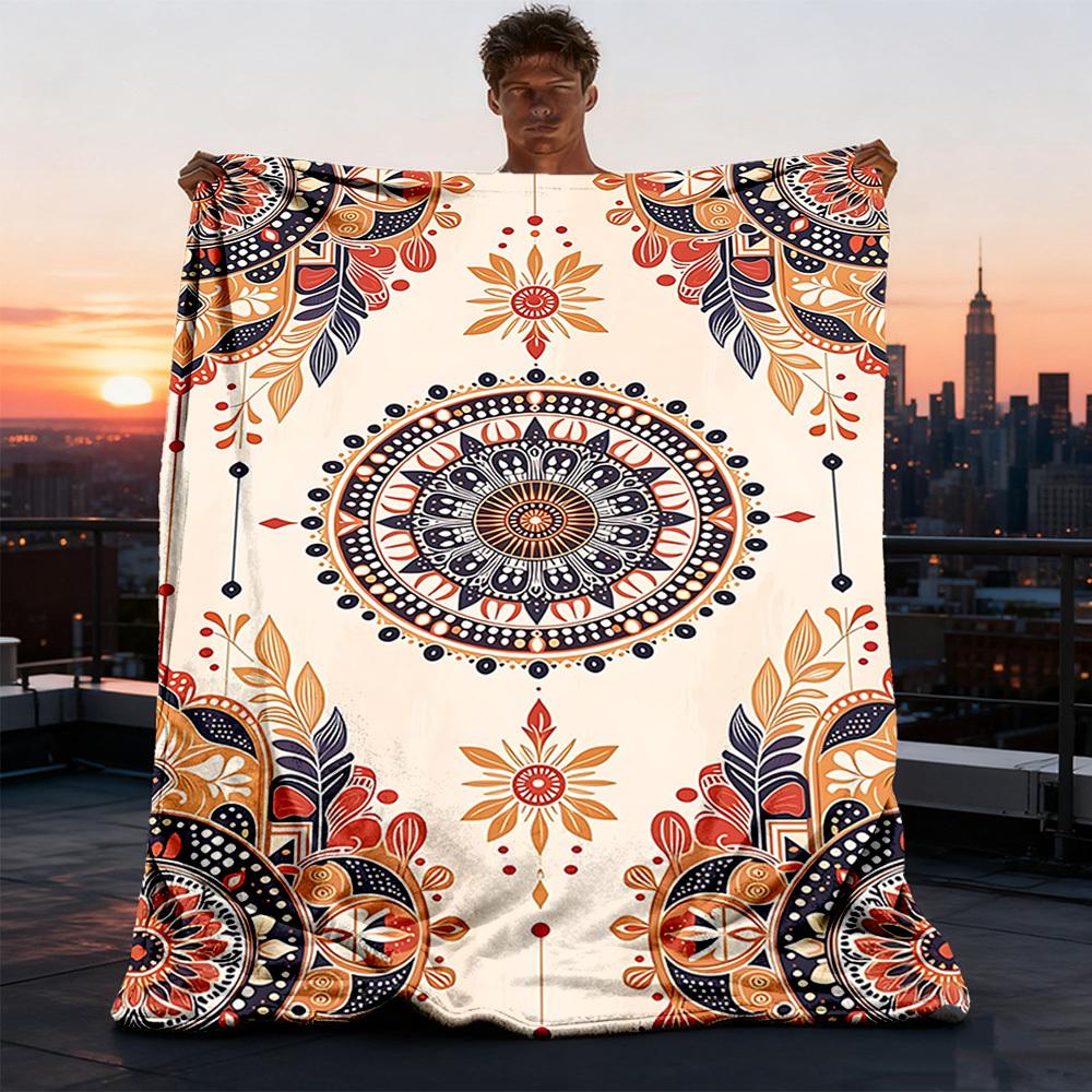 1pc Mandala Pattern Print Outdoor Blanket, Lightweight Polyester,