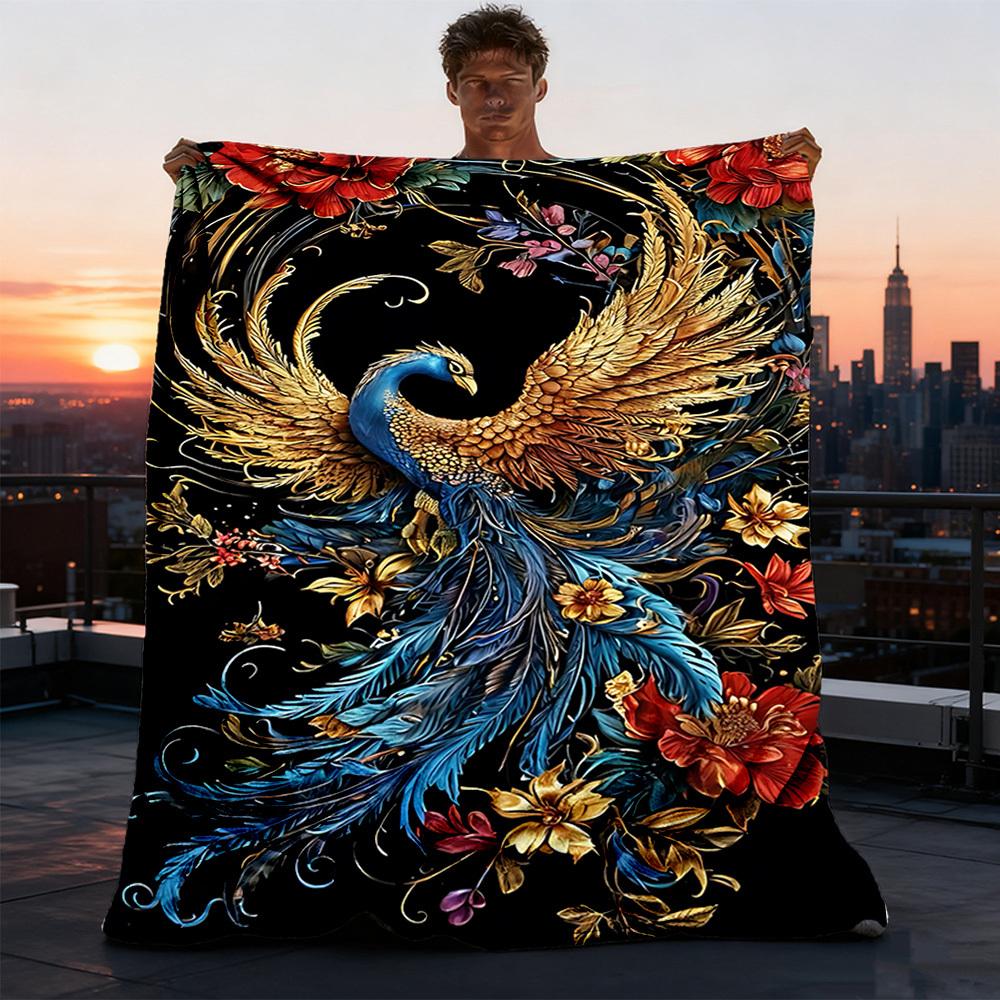 1pc Phoenix Feather Print Outdoor Blanket, Lightweight Polyester,