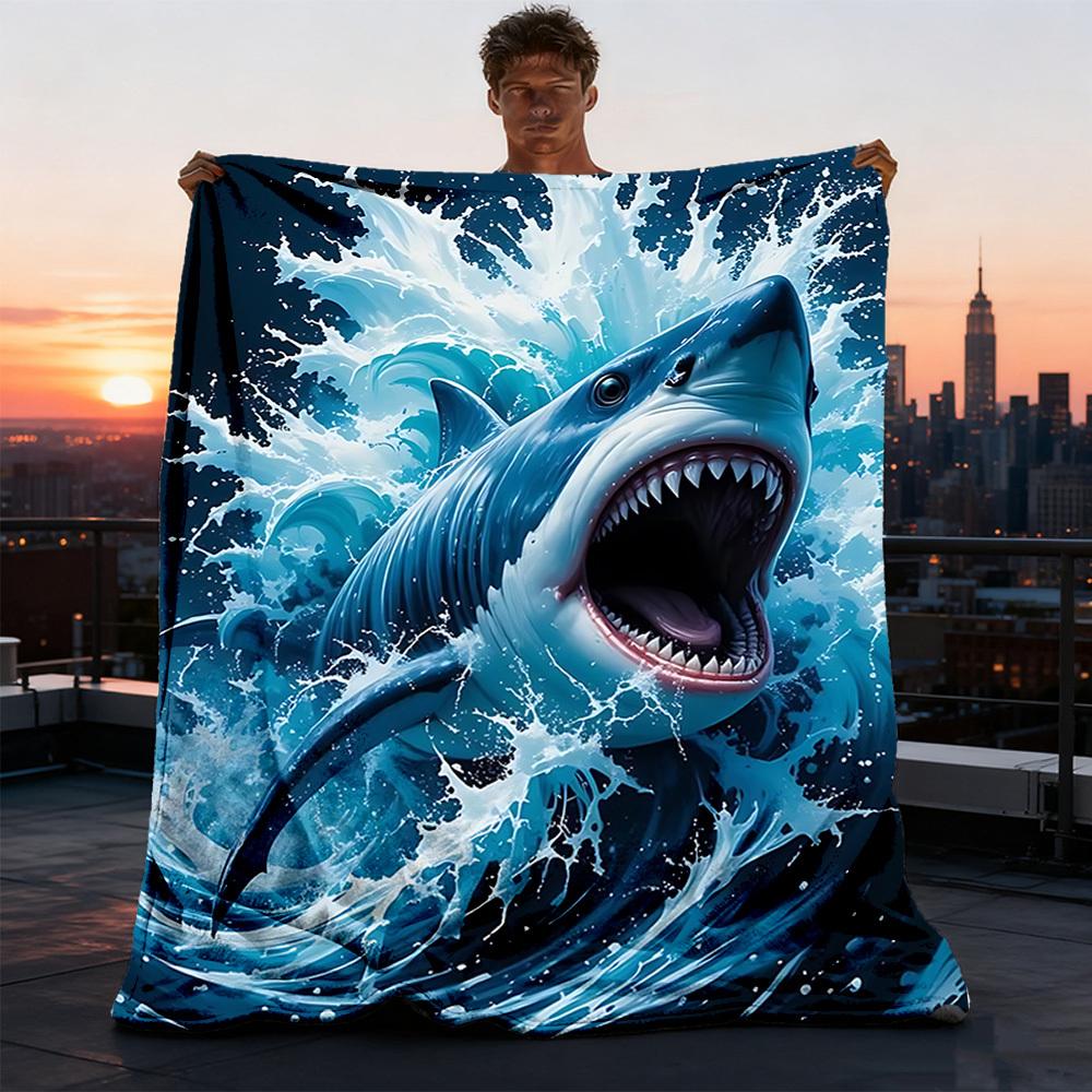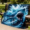 1pc Shark Attack Print Outdoor Blanket, Lightweight Polyester,