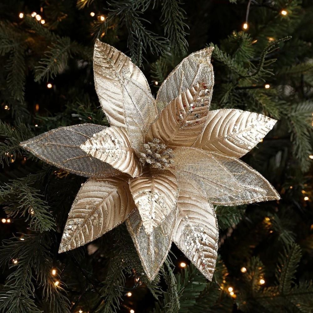 New 29CM Artificial Poinsettia Flower Glitter Sparkling Simulation Flowers Sequins Sequins Flower Christmas Decoration