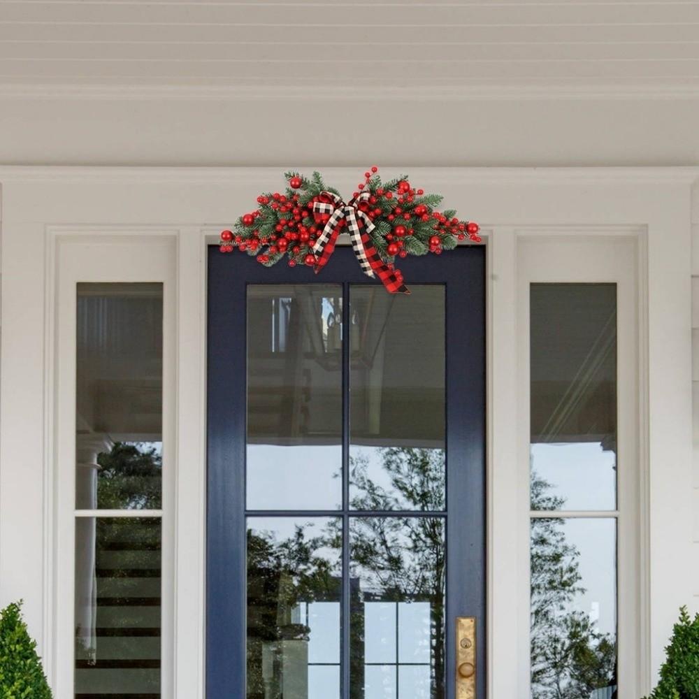 New 70cm Christmas Wreaths Artificial Hanging Door Swag Plaid BowKnot Red Berries Xmas Garlands Home Decor