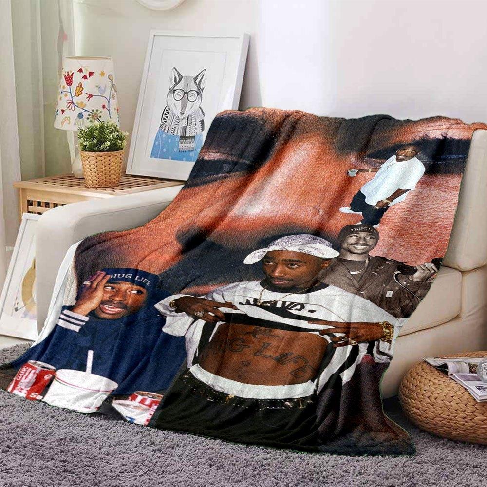 1 Stück 2Pac Hip Hop Decke Weich Leicht Ganzjahres Mehrzweck Überwurf für Sofa, Bett, Büro & Picknicks, Französischer Stil mit Ikonischem Albumcover & Zitaten