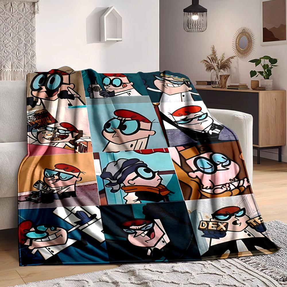 1 Stück Dexter's Labor Gemütliche Print-Decke Leichte Warme Flanell-Kuscheldecke für Sofa, Bett, Wohnzimmer