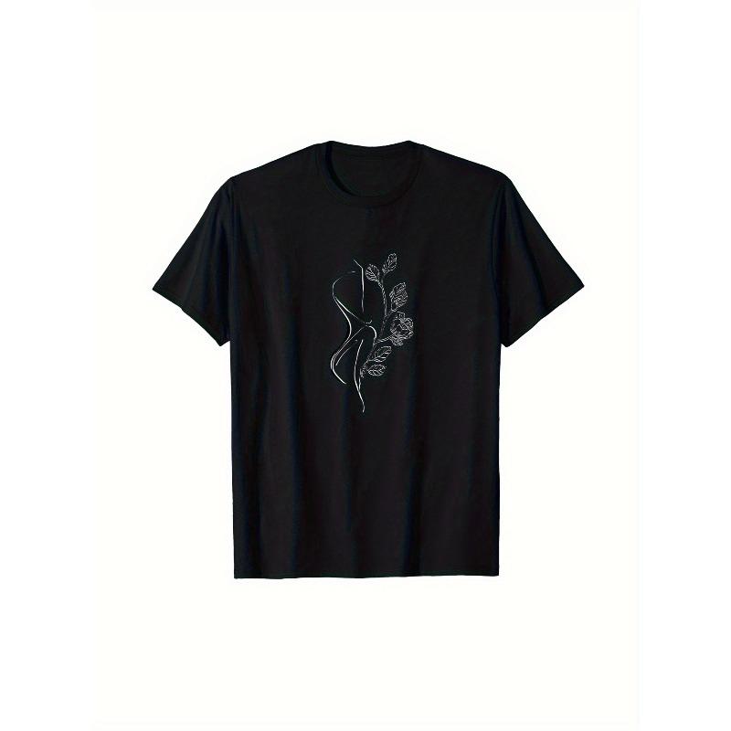 Europäische Größe Minimalistisch, Linienzeichnung, Weiblich, Einfache Blume, Pfingstrose T-Shirt