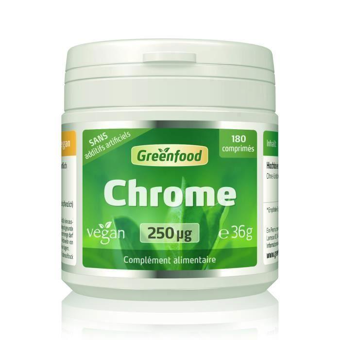 Greenfood chrome, 250 mcg, dose élevée, 180 comprimés, vegan- pour un métabolisme des macronutriments normal.