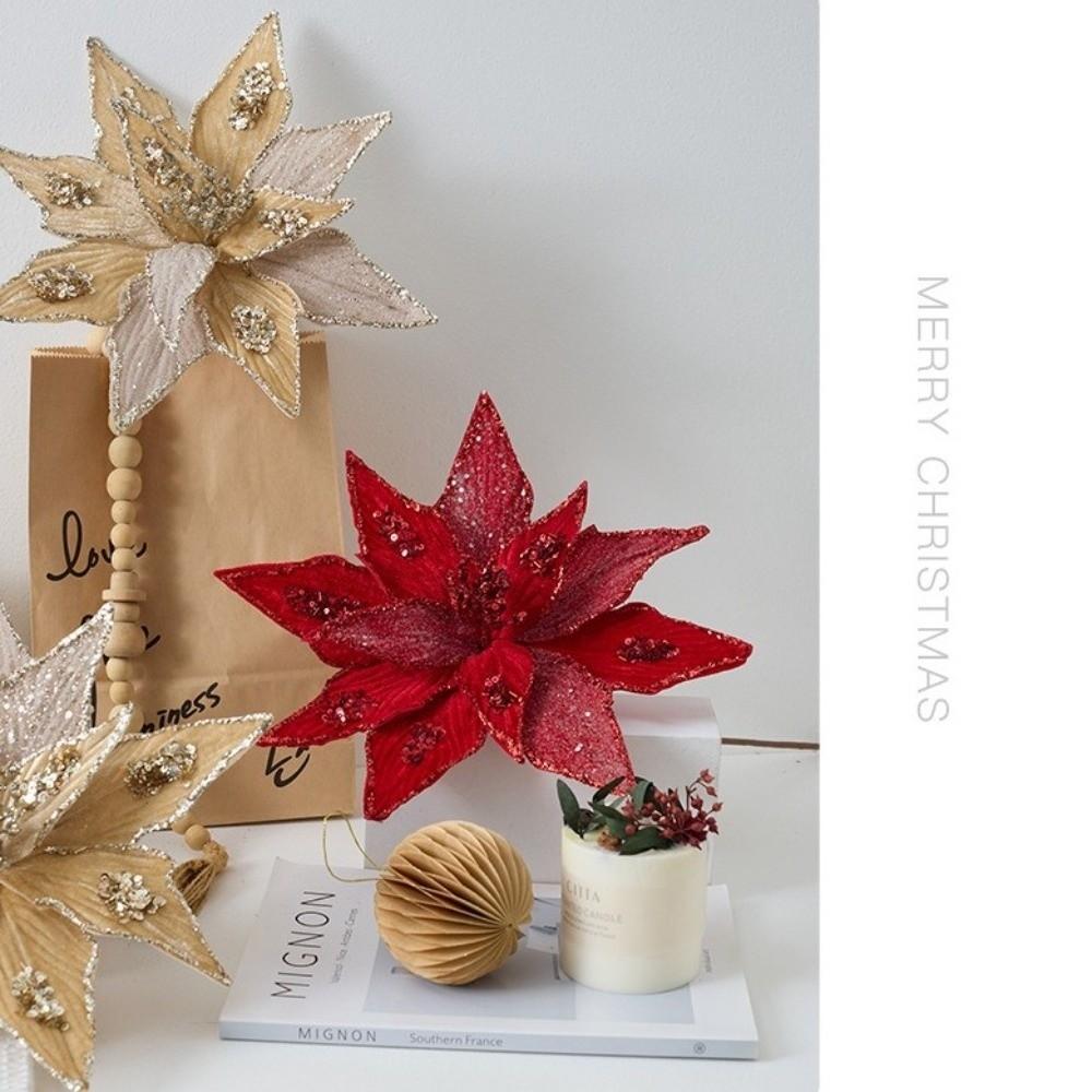 Neue 32 cm künstliche Weihnachtssternblume Glitzer Funkelnde Simulationsblumen Pailletten Weihnachts-Glitzerblume Weihnachtsdekoration