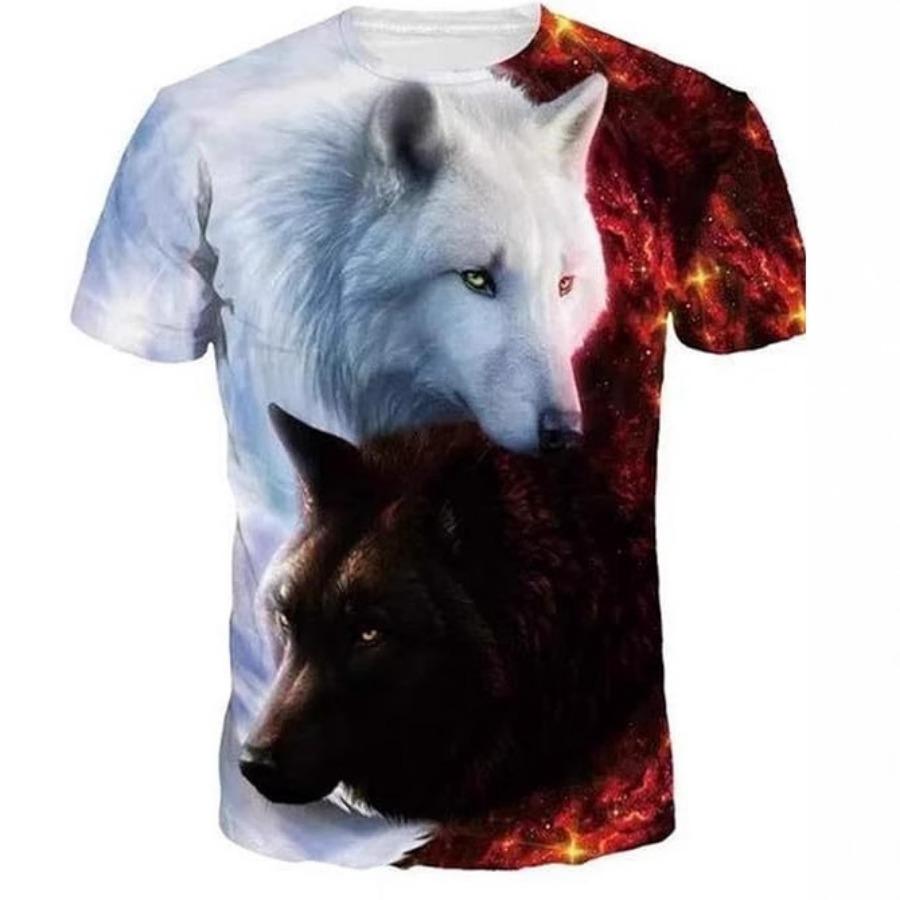 Short Sleeve Crew Neck T-Shirt 3D Digital Printing Summer New Fashion Versatile Men Animal Wolf Cat