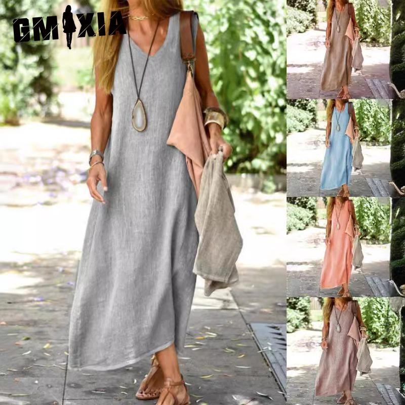 GMXIA Damenmode, Sommer, Frühling, einfarbig, ärmellos, U-Ausschnitt, Freizeitkleider