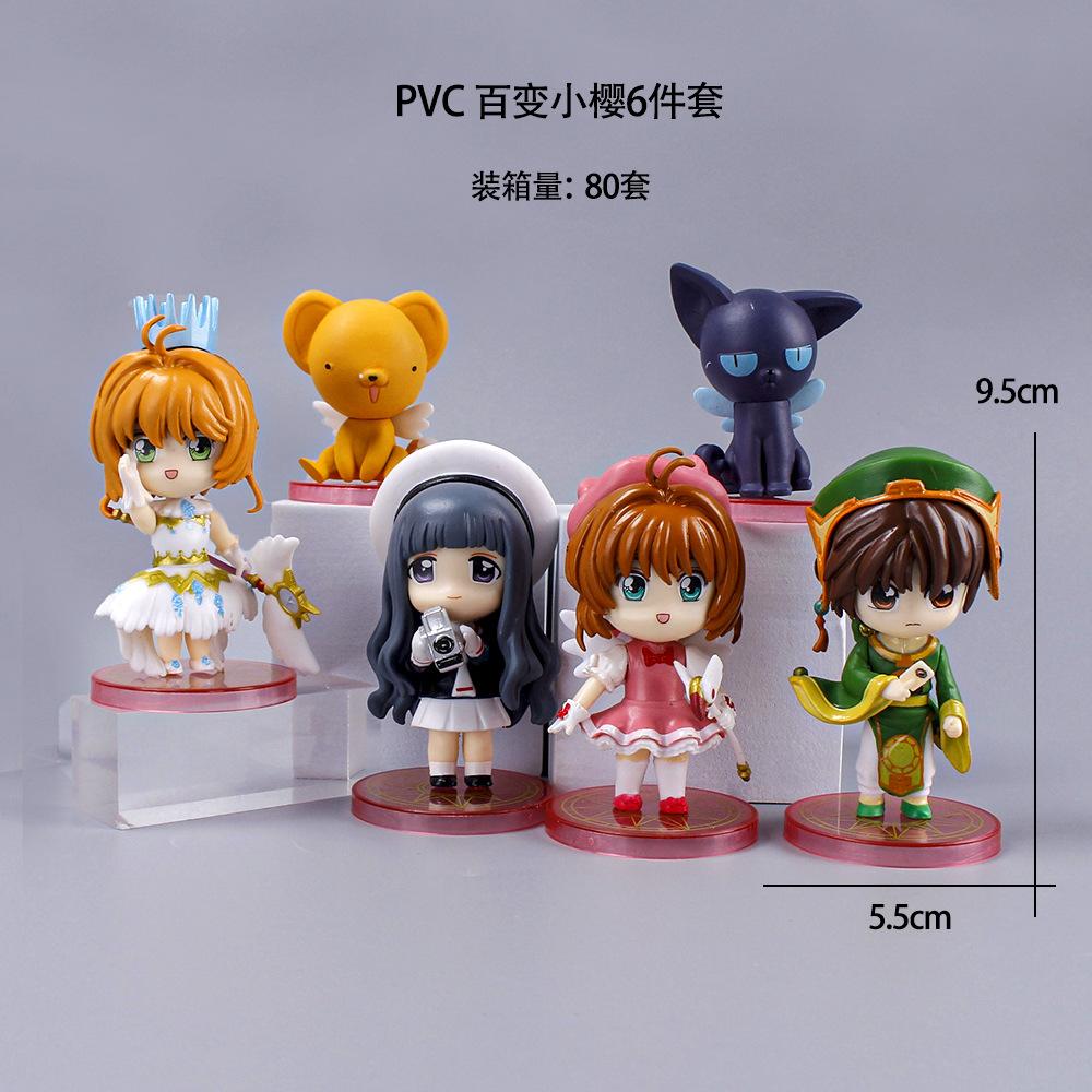 6 Stück Anime Card Captor Figur KINOMOTO SAKURA LI SYAORAN Daidouji Tomoyo CERBERUS Set Modell Spielzeug Kuchen Geschenk Actionfigur PVC