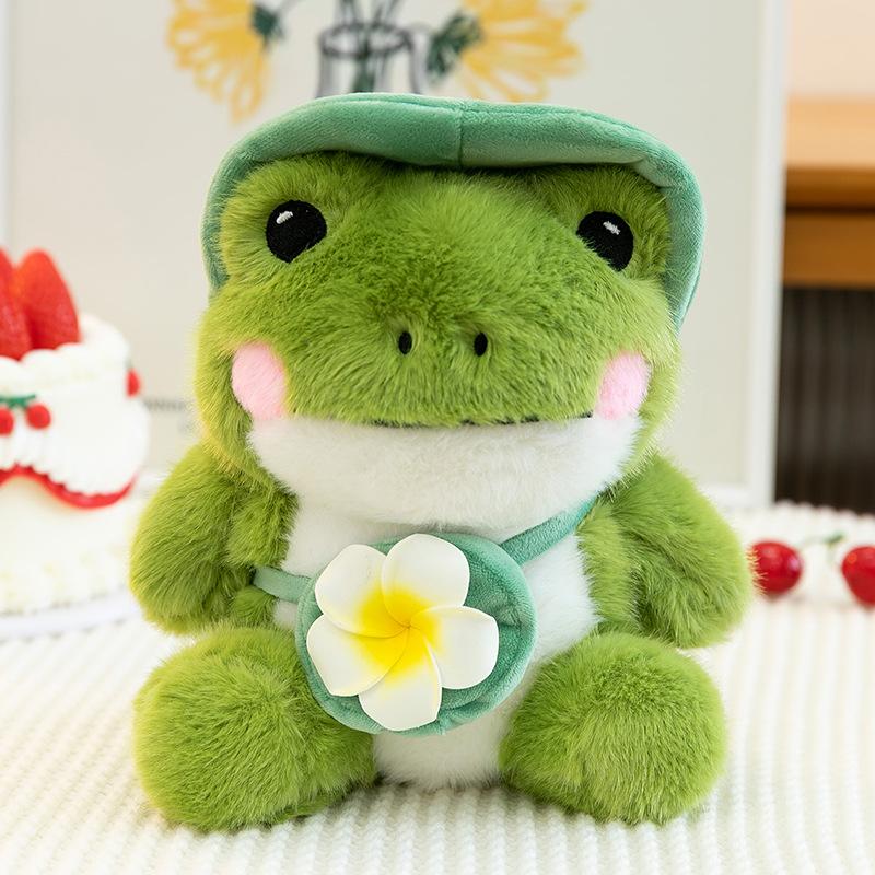 ZOCO Lächelnder Frosch Puppe Reise Frosch Puppe Plüschtier Füllung Tier Weiches Fell Geburtstag Weihnachten Geschenk Cartoon Ornament