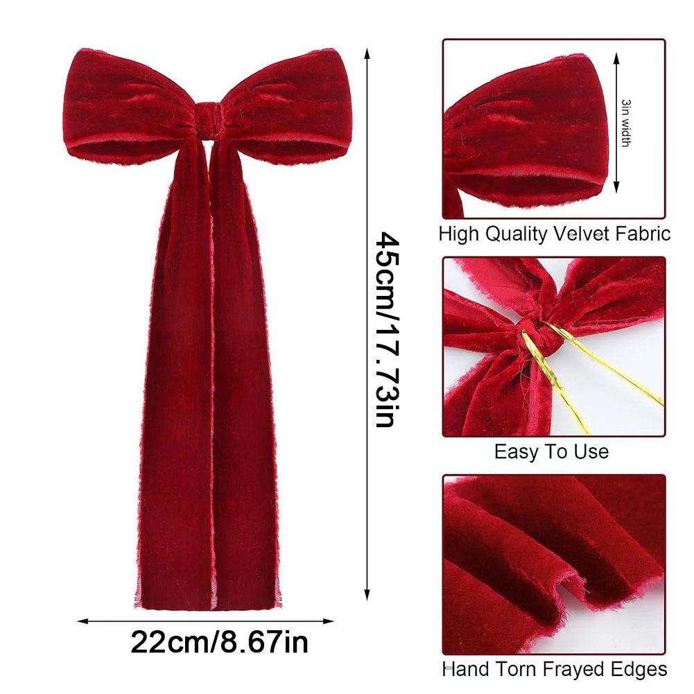 Velvet Christmas Bow 22 * 45cm Large Christmas Atmosphere Staircase Wreath Decoration Bow Christmas Tree Top Decoration