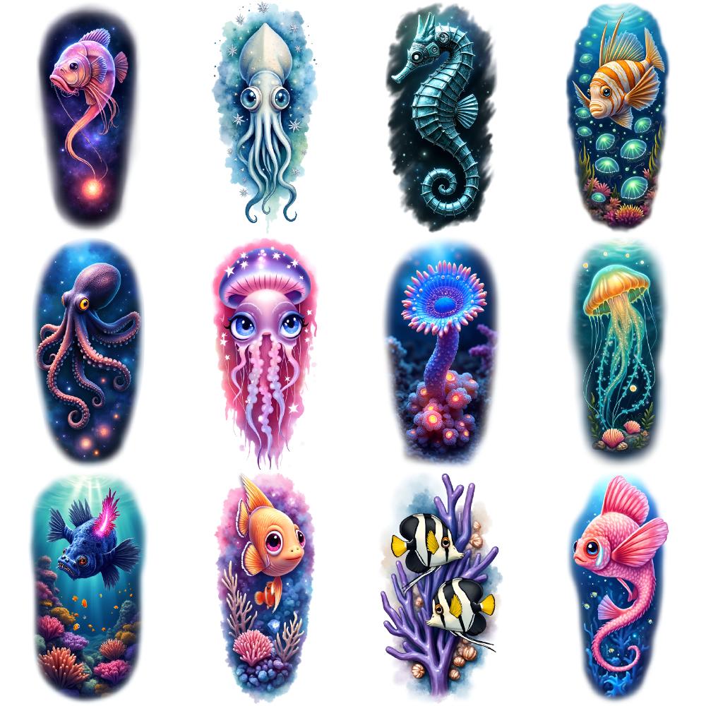 12 Stück Temporäre Tattoos Wasserdicht Langlebig Körperaufkleber Seepferdchen Meeresleben Algen Für Arme Oberschenkel Erwachsene