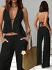 2-teiliges Bekleidungsset, bestehend aus einem trägerlosen Neckholder-Top und einer Hose mit weitem Bein und Kordelzug, geeignet für Freizeitkleidung, Damen-Strandmode