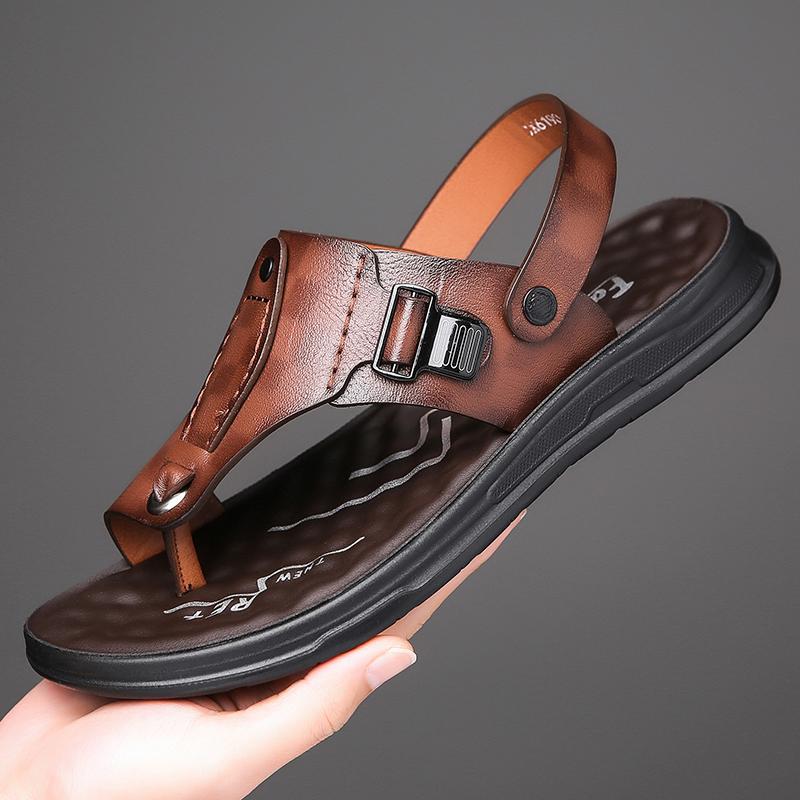 TUINANLE Neue Herren Rutschfeste Ledersandalen Offene Zehen Weiche Sommer Strand Pantoffeln für Herren Outdoor Lässige Bequeme Sandalen