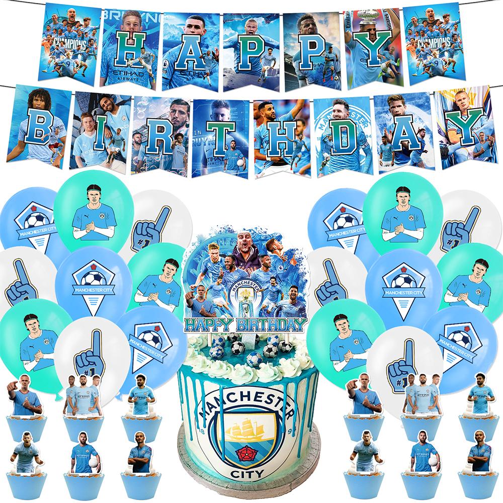 32 Stück Manchester City Ballons Enthalten ein Banner, Kuchenaufsätze, Ballons