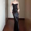Women's Satin Maxi Dress Spaghetti Strap V Neck Bodycon Evening Dress