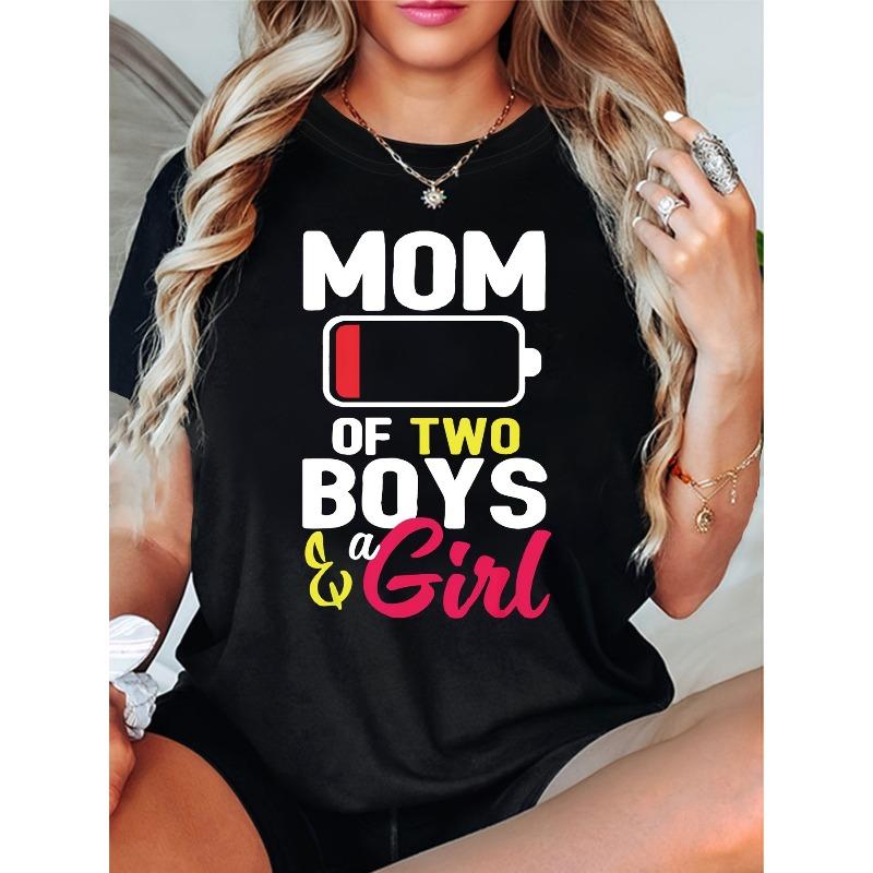 Damen MOM OF TWO & Ein Buchstabendruck T-Shirt Rundhals Kurzarm Frühling Sommer Lässiges Oberteil