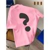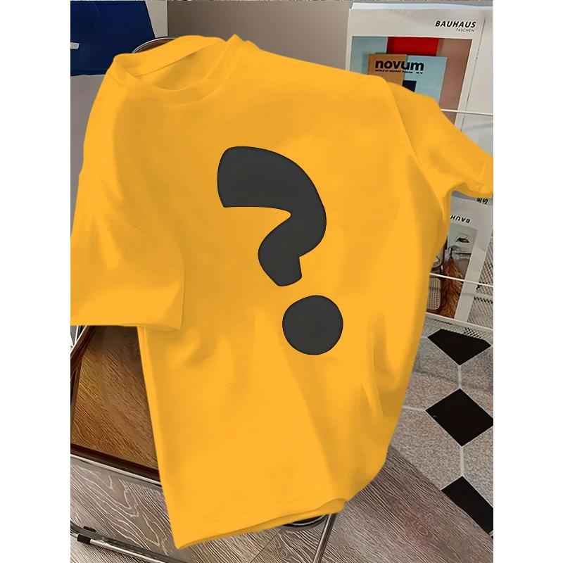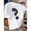 European sizes ' Black Question Mark Print - Short Sleeve Round Neck Casual Summer Top for &, Breathable White Shirt with Iconic Q Mark Symbol,