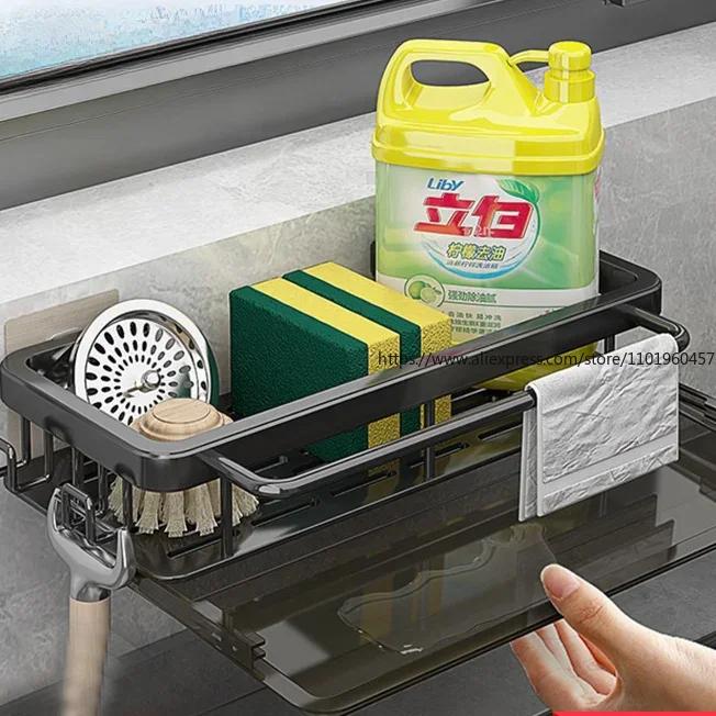 Raum Aluminium Küche Lagerung Rack Waschbecken Abfluss Rack Schwamm Organizer Hängen Seife Abtropffläche Regal Korb Bad Shampoo Regale