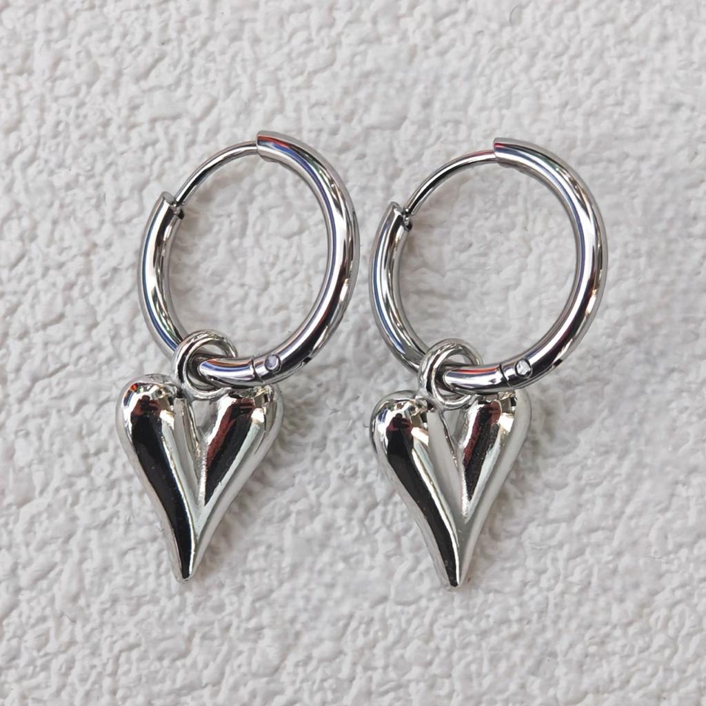 Trendige Retro-Doppelkreis-Ohrstecker mit 3D-Herz-Anhänger