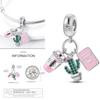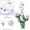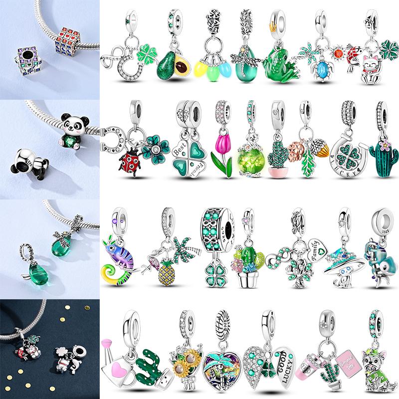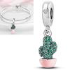 Neuer 925er Silber Kaktus Kleeblatt Anhänger Frühlingsgrüne Serie Perlenanhänger Für Original Perlenarmband DIY Schmuck