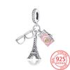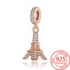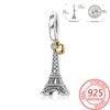 Creative 925 Silver Eiffel Tower Gold Heart Double Charm Fit DlY Bracelet Necklaces Women's Dating Jewelry Accessories
