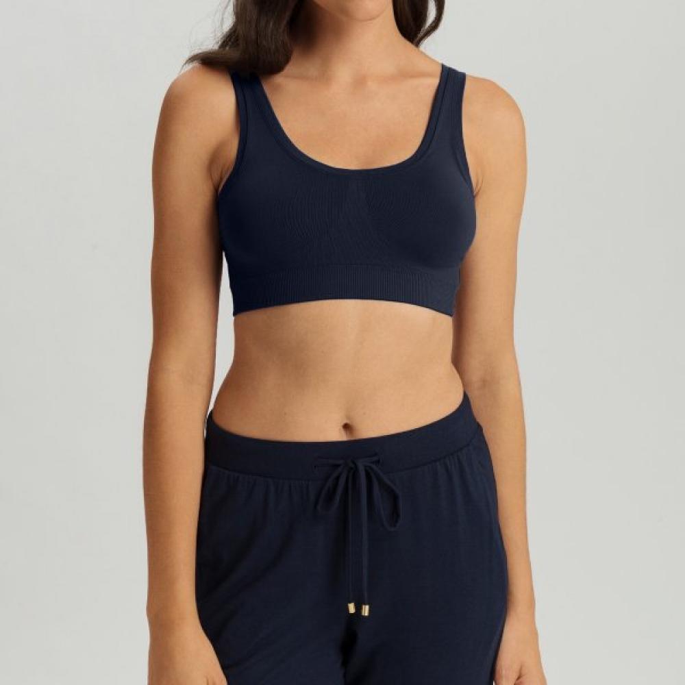 The HANRO Touch Feeling Crop Top Pad (71806_Deep Navy) features a removable padded crop top design that provides a perfect fit. With a seamless construction to minimize skin irritation, it emphasizes a soft wearing experience. The deep navy color and crop top style make it suitable for both active sports and everyday wear. The padding can be removed and adjusted according to personal needs.
