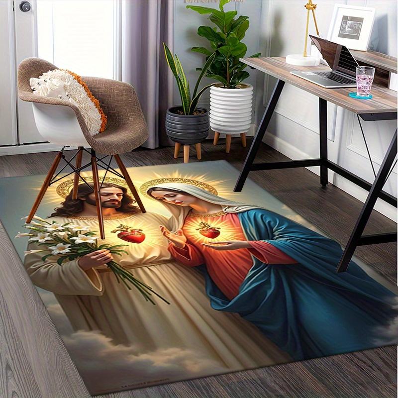 1pc Sacred Heart,Virgin Mary,Jesus Christ Office Carpet Soft Polyester Entrance Carpet Washable Non