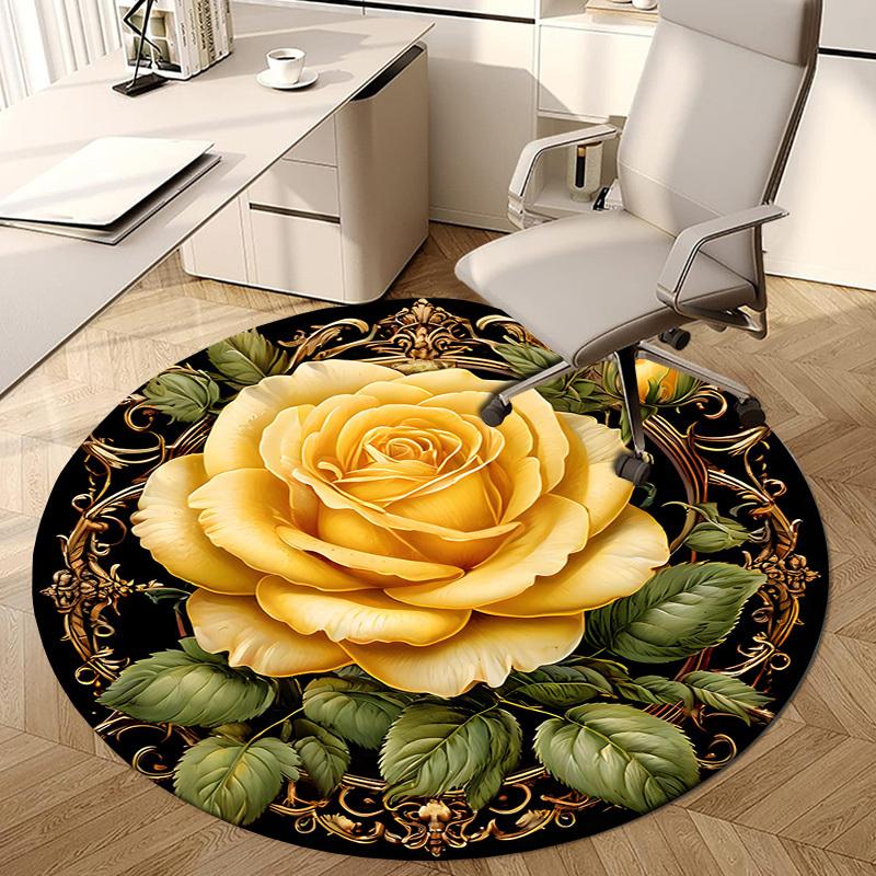 1pc Office Carpet Chair Mats Golden Rose Ornament Perfect for Decorating Office Chairs, Living Rooms, Or Bedrooms