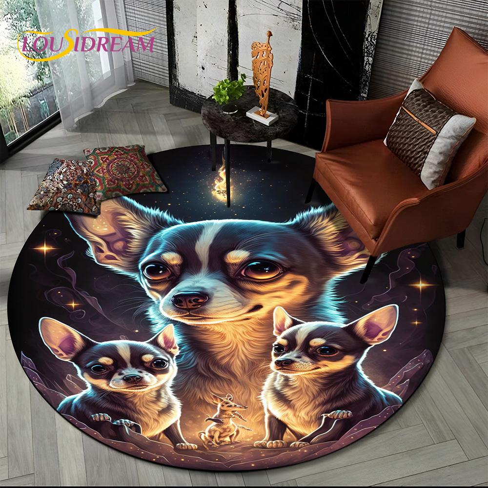 Cute Dog Samoye,Chihuahua,Koki Pomeranian Cartoon Round Carpet Rug for Living Room Bedroom Decor,kids Pet Area Rug Non-slip Mat