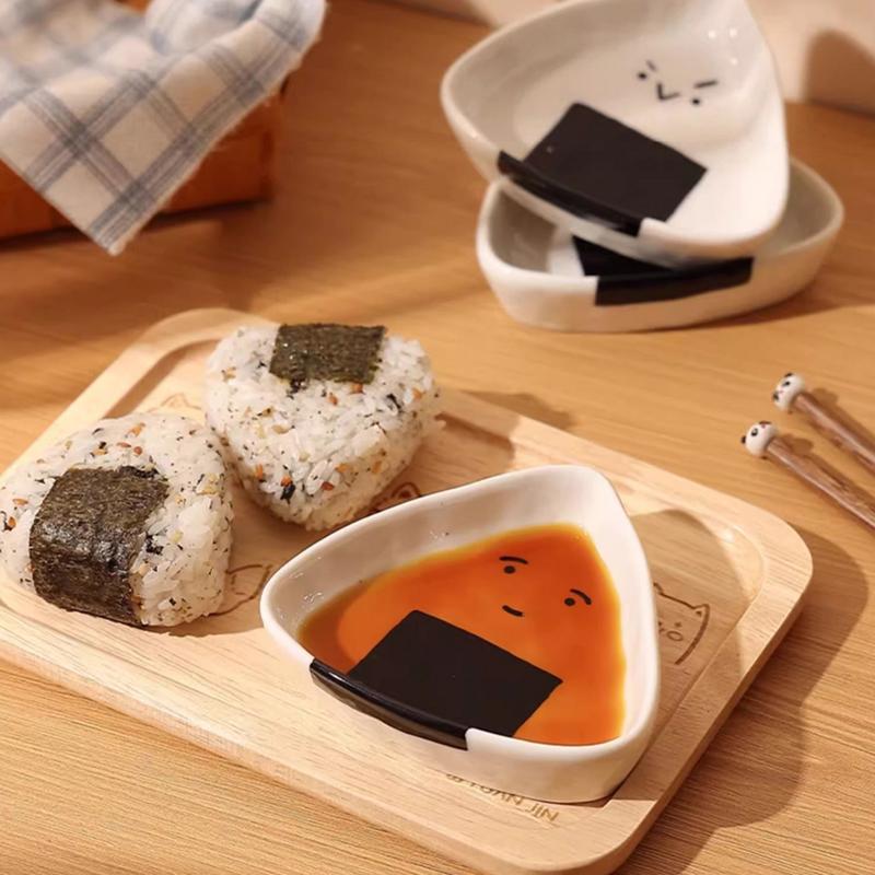 Liebliche Sesam-Punkte Keramikscheibe Dreieck Reisbällchen Geschmack Schale Schlichtheit Haushalt Kreativ Hot Pot Dippschale Essigschale