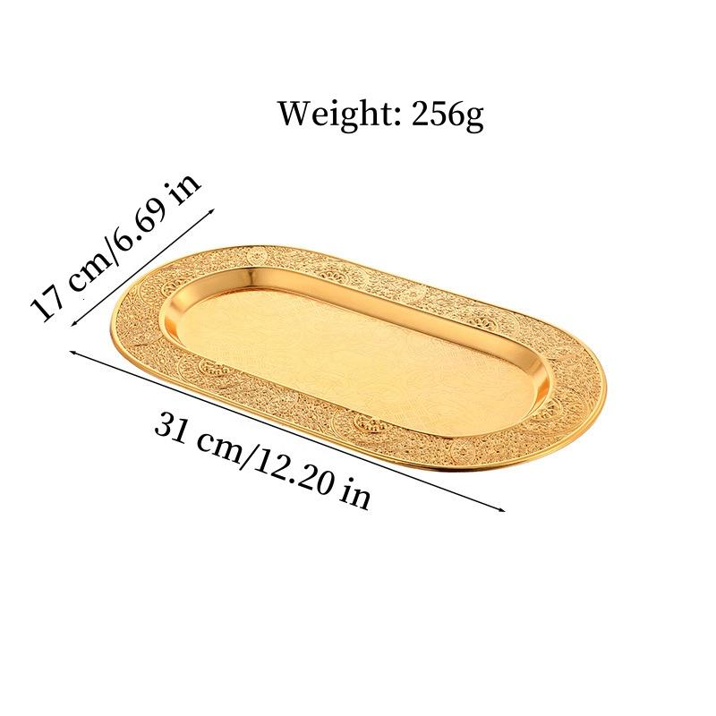 European Fruit Plate, Alloy Household Oval Shape Plate, Golden Niche Retro Snack Plate, Candy Plate Home Living Room Decoration