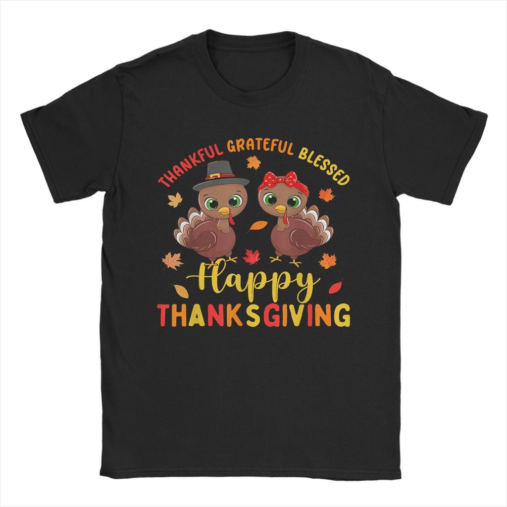Thankful Grateful Blessed Thanksgiving Turkey TShirts for Men Funny Pure Cotton Tees O Neck Short Sleeve T Shirt 6XL Tops