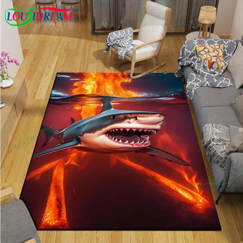 Moderne 3D-Haifisch-Teppich für Wohnzimmer Heim-Sofa-Dekoration, Kinder-Spiel-Dekor Bodenteppich Yoga-Matte Großer Teppich